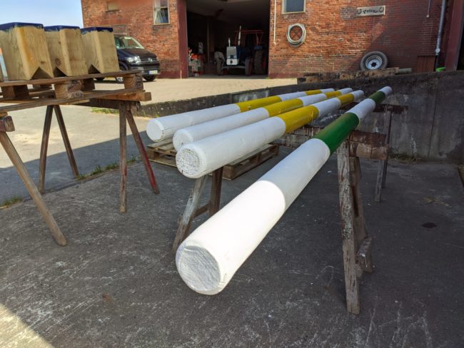 Gestern haben die Springreiter bei schönem Wetter gemeinsam alle Stangen neu gestrichen. Der Springplatz sieht nun wieder aus wie neu!