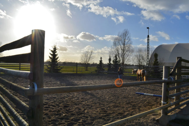 Passend zum Auftakt des Sommers wurde der Außenreitplatz wieder einmal mit neuen Hackschnitzeln versorgt, die erst gleichmäßig verteilt und dann in mehrstündiger Arbeit eingearbeitet wurden. Das Ergebnis ist ein wieder angenehm federnder Boden.